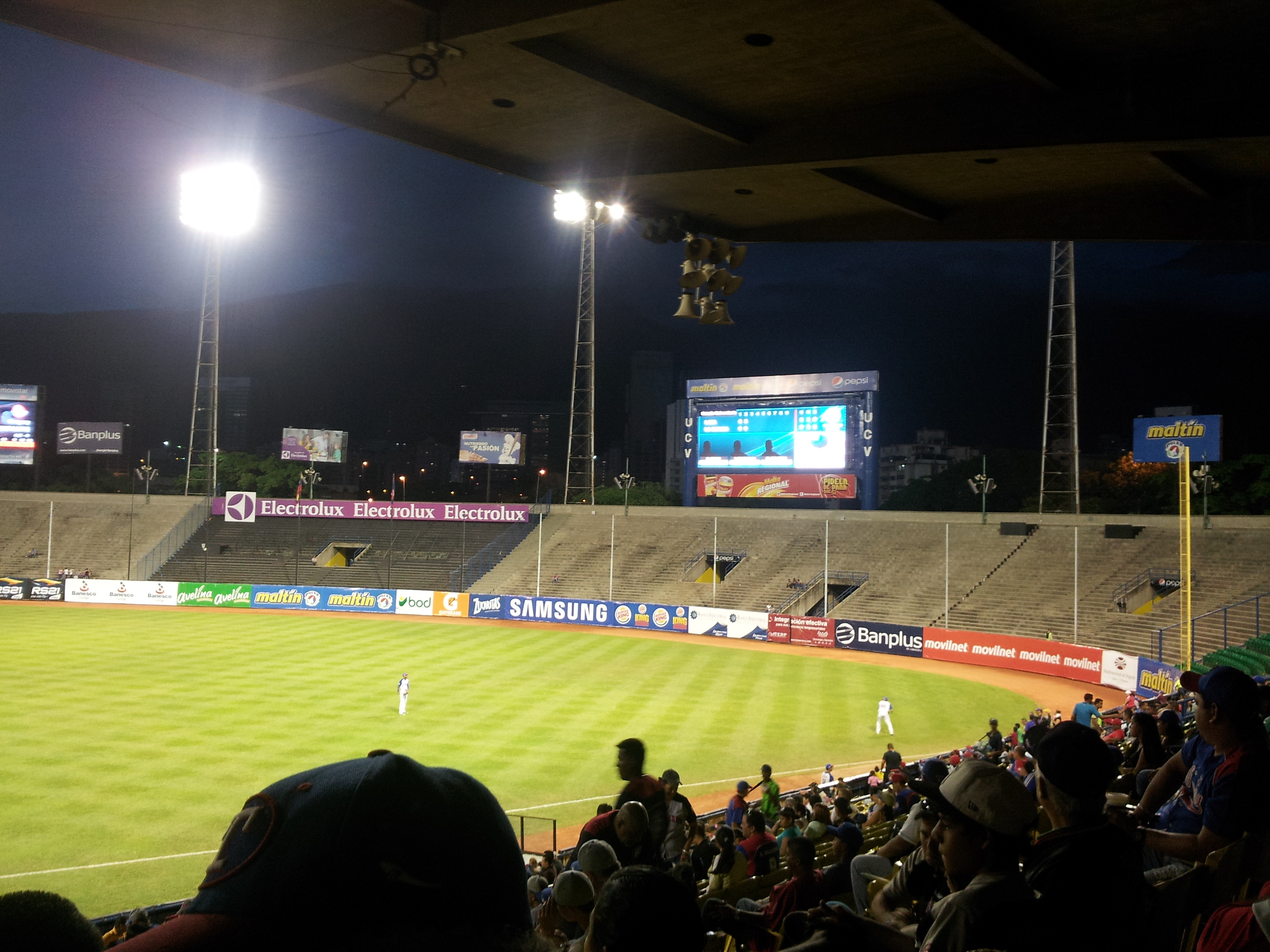 Mostly empty, mostly grey seats.