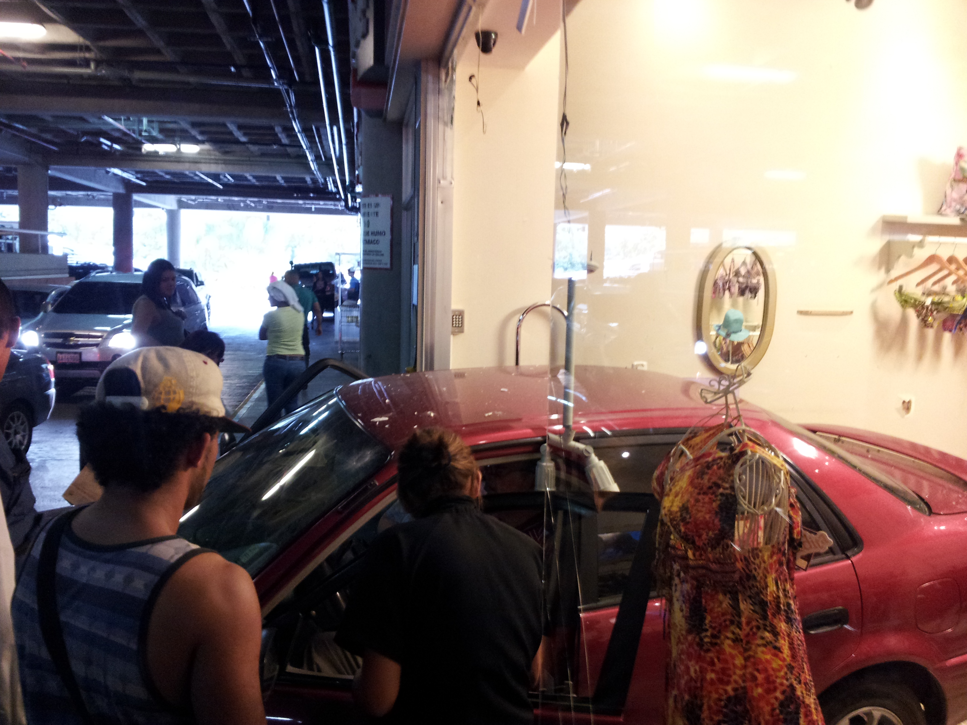 One can be upset about the economy but to pick on a small boutique clothing shop with the rear of the car: unacceptable. Really though, it was an old man and wife who looked helpless and easily won our pity; we didn’t hang long with the throng of gawkers. Here’s to hoping their week improves.