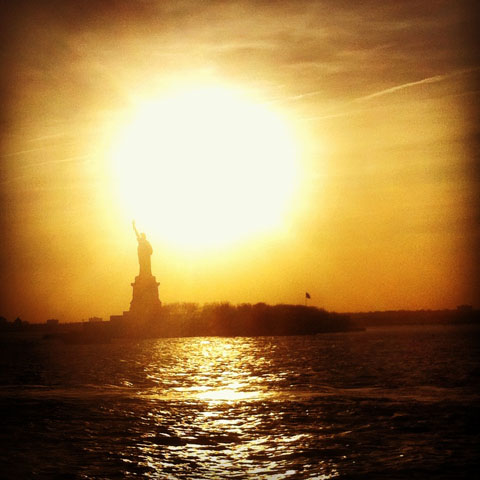 Lady Liberty at sunset