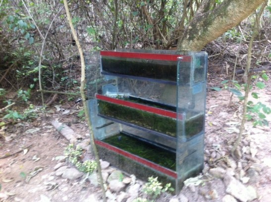 Fish tanks with little guppies.